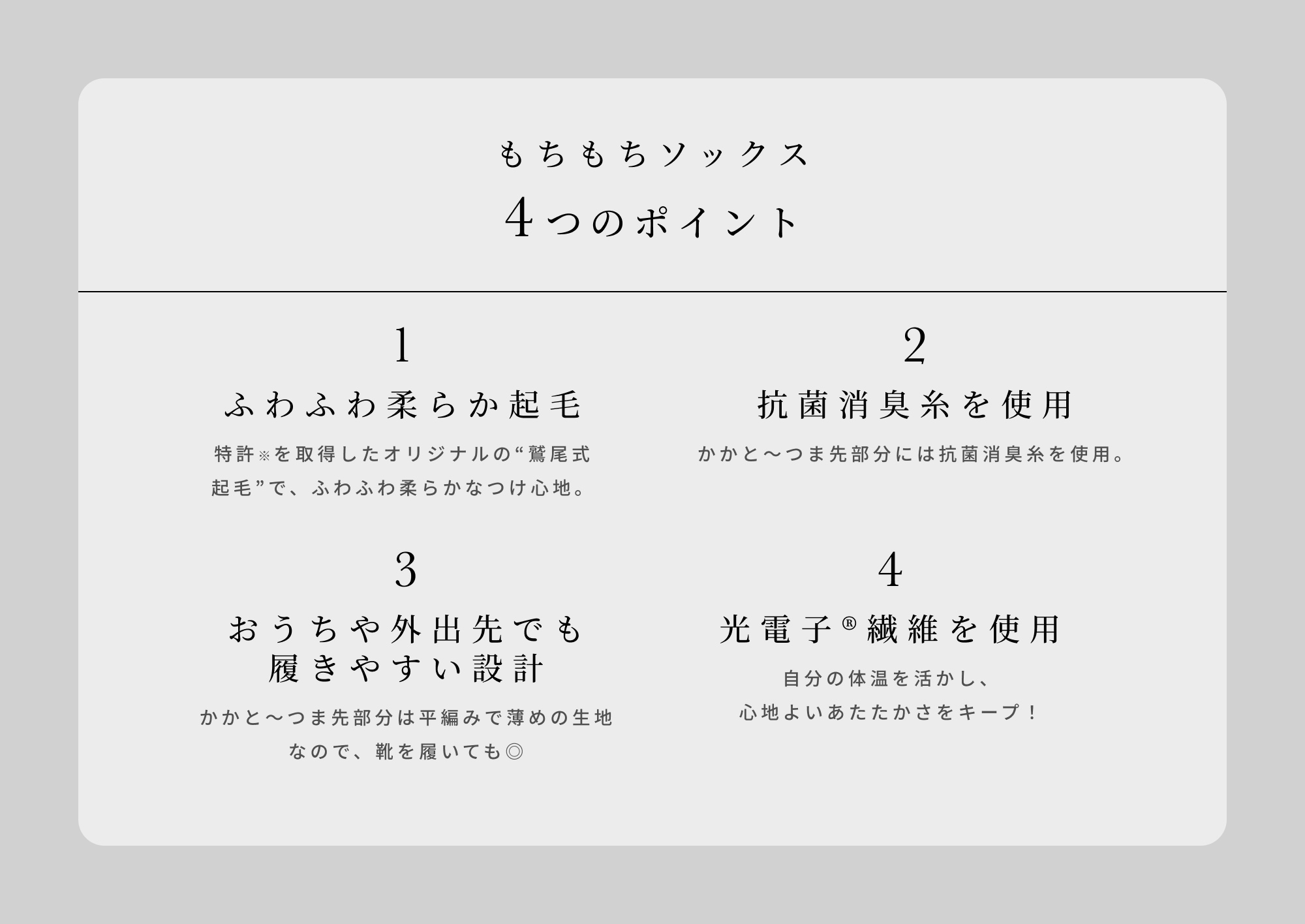 寒い日のご自愛ソックスとして、大切な方へのギフトとしてもおすすめです。もちもち柔らかな生地に包まれる心地よさを、ぜひ体感してみてください。